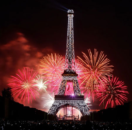 In het jaar 2000 installeerde men talloze knipperlichten en krachtige zoeklampen op de toren. Iedere avond is er een lichtshow, en de zoeklampen bovenaan maken ’s nachts van de Eiffeltoren een lichtbaken in de Parijse skyline. Elk jaar op quatorze juillet, 14 juli, de Franse nationale feestdag, wordt rond de Eiffeltoren een groots vuurwerk afgestoken ter ere van de verjaardag van de Franse Revolutie.